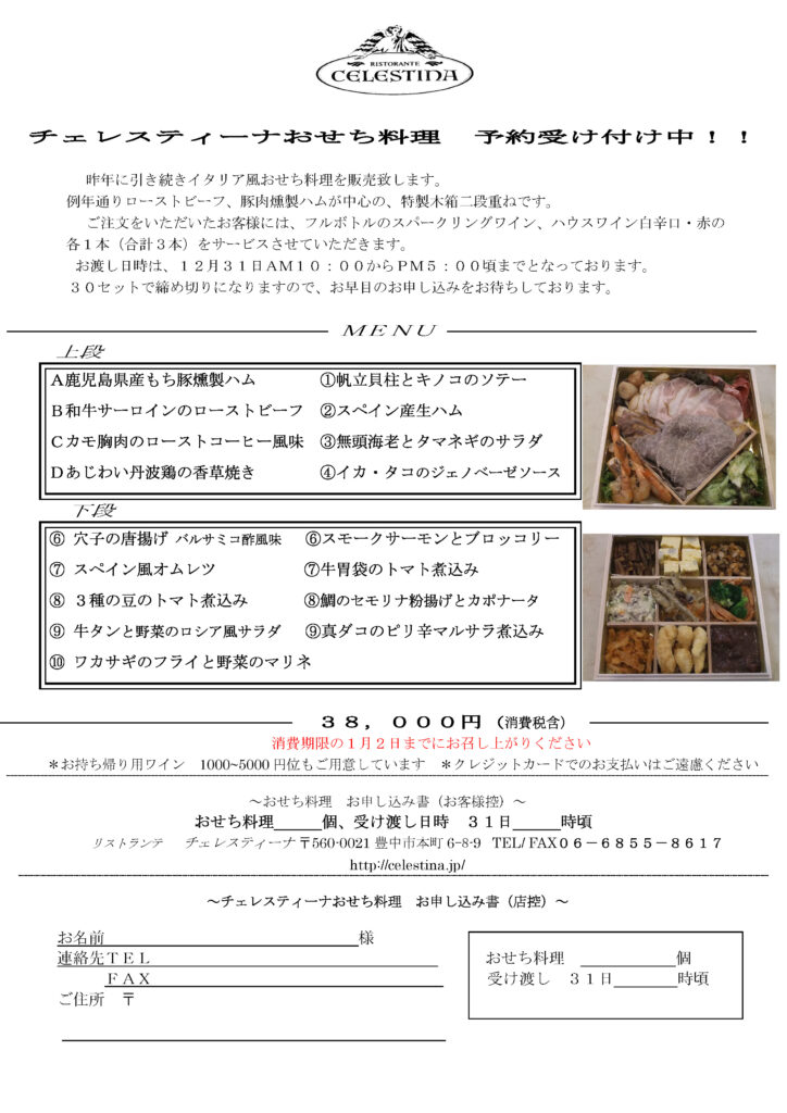 昨年に引き続きイタリア風おせち料理を販売致します。