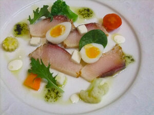 | ●ハマチの燻製小さな野菜添え バジリコドレッシング | ![]() |