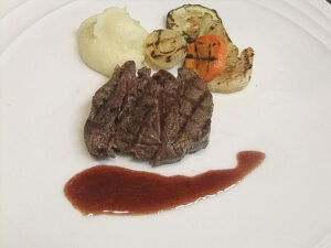 | ●牛フィレ肉と野菜のグリル 赤ワインソース | ![]() |
