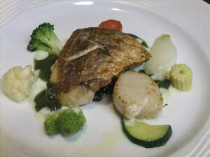 ●白身魚と帆立貝柱のポワレ ほうれん草ソース