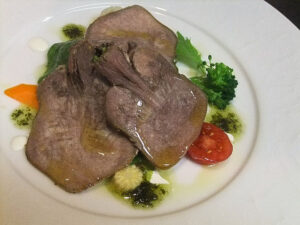 ●自家製牛タンの燻製 サラダ仕立てグリーンソース