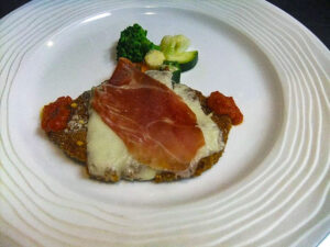 ●仔牛フィレ肉のカツレツボロニア風(生ハムとチーズのせ)